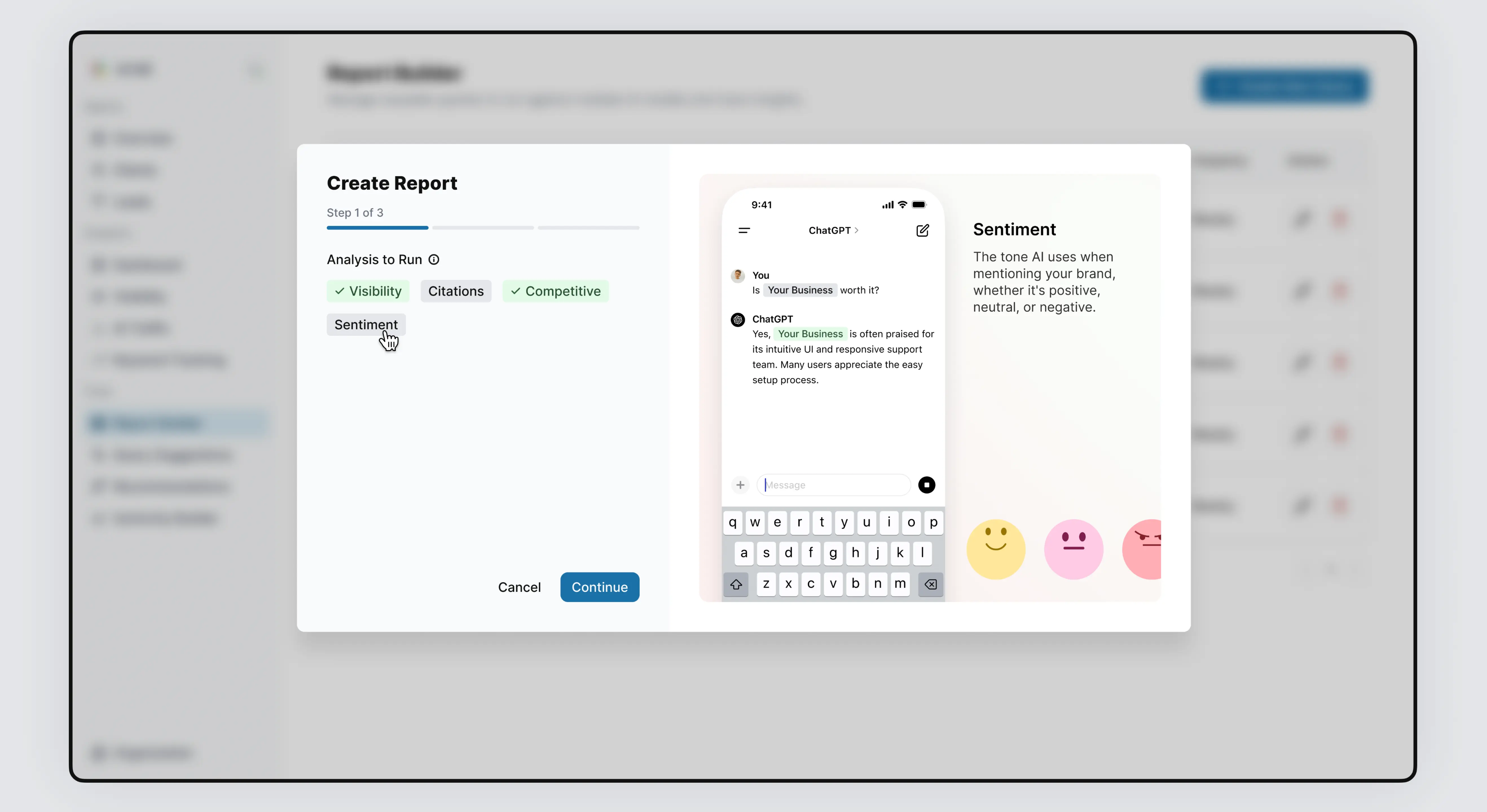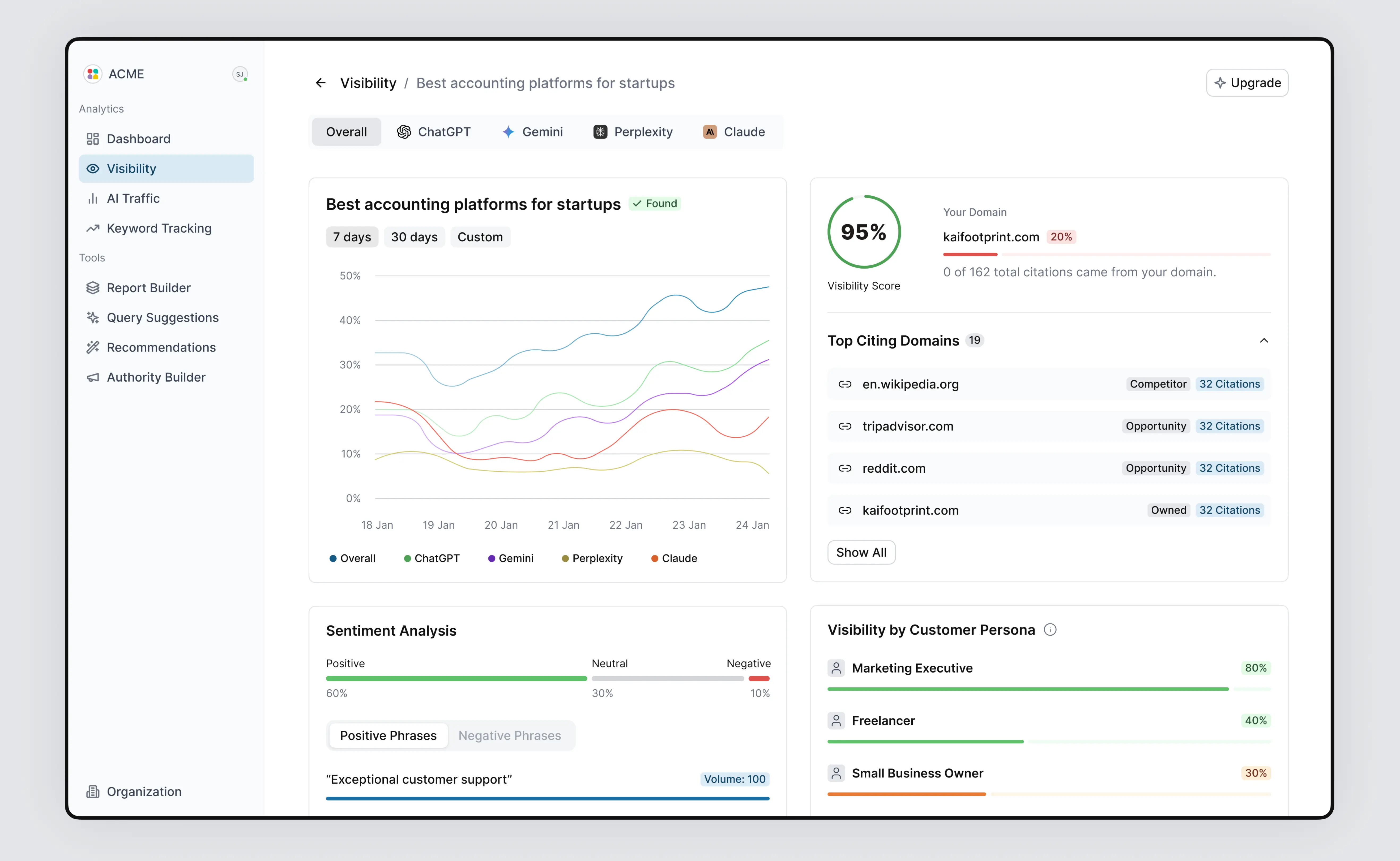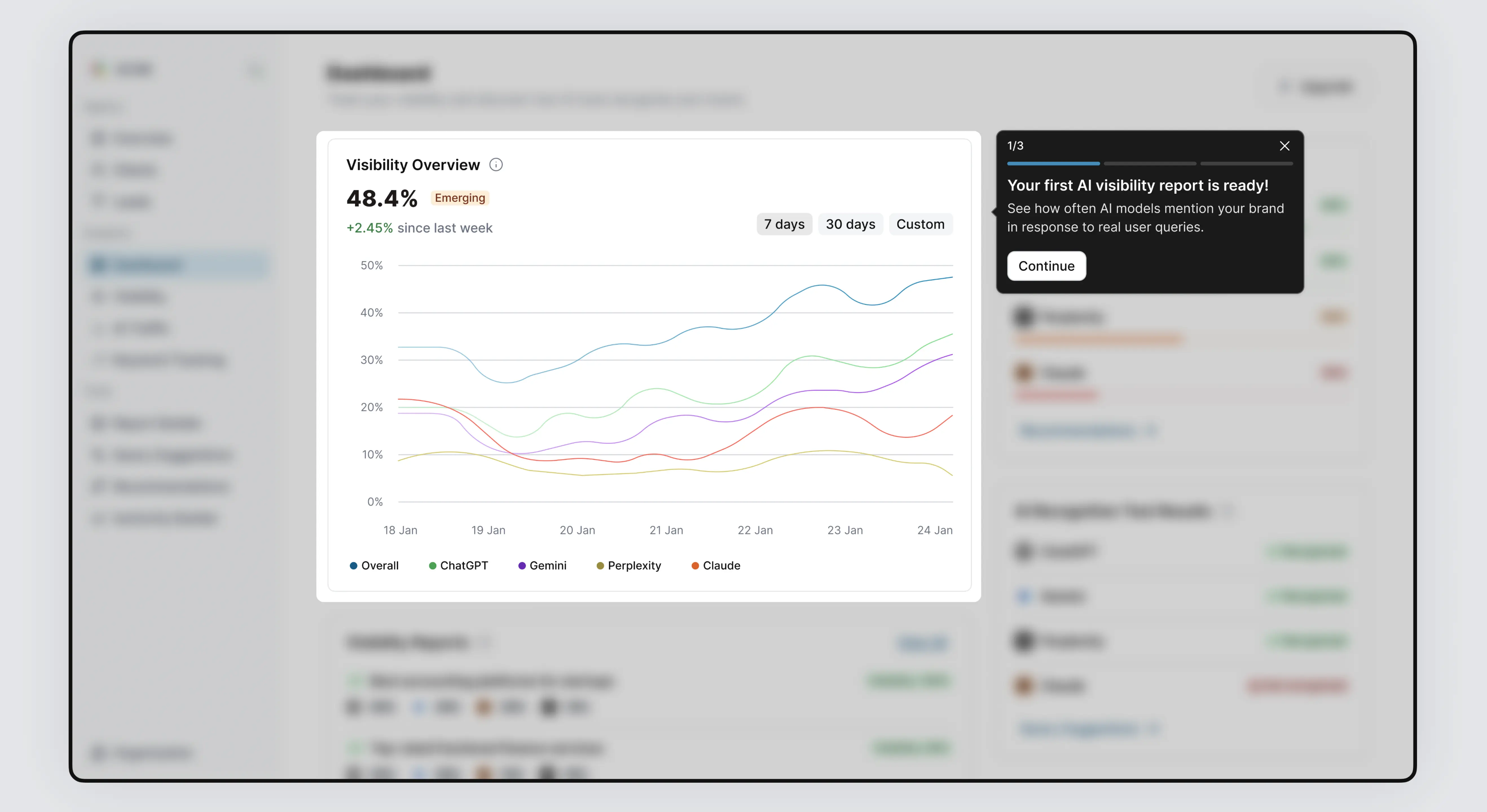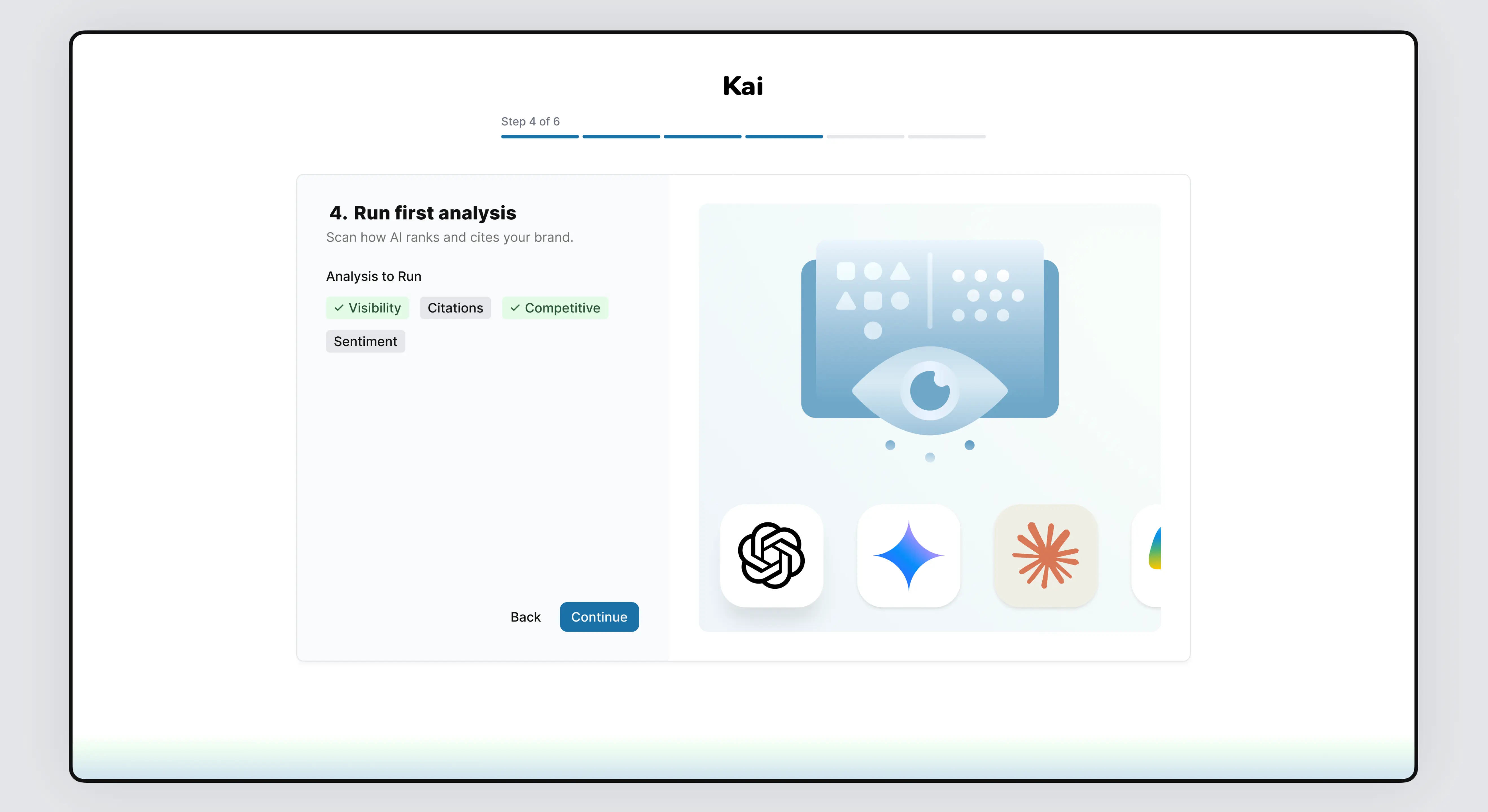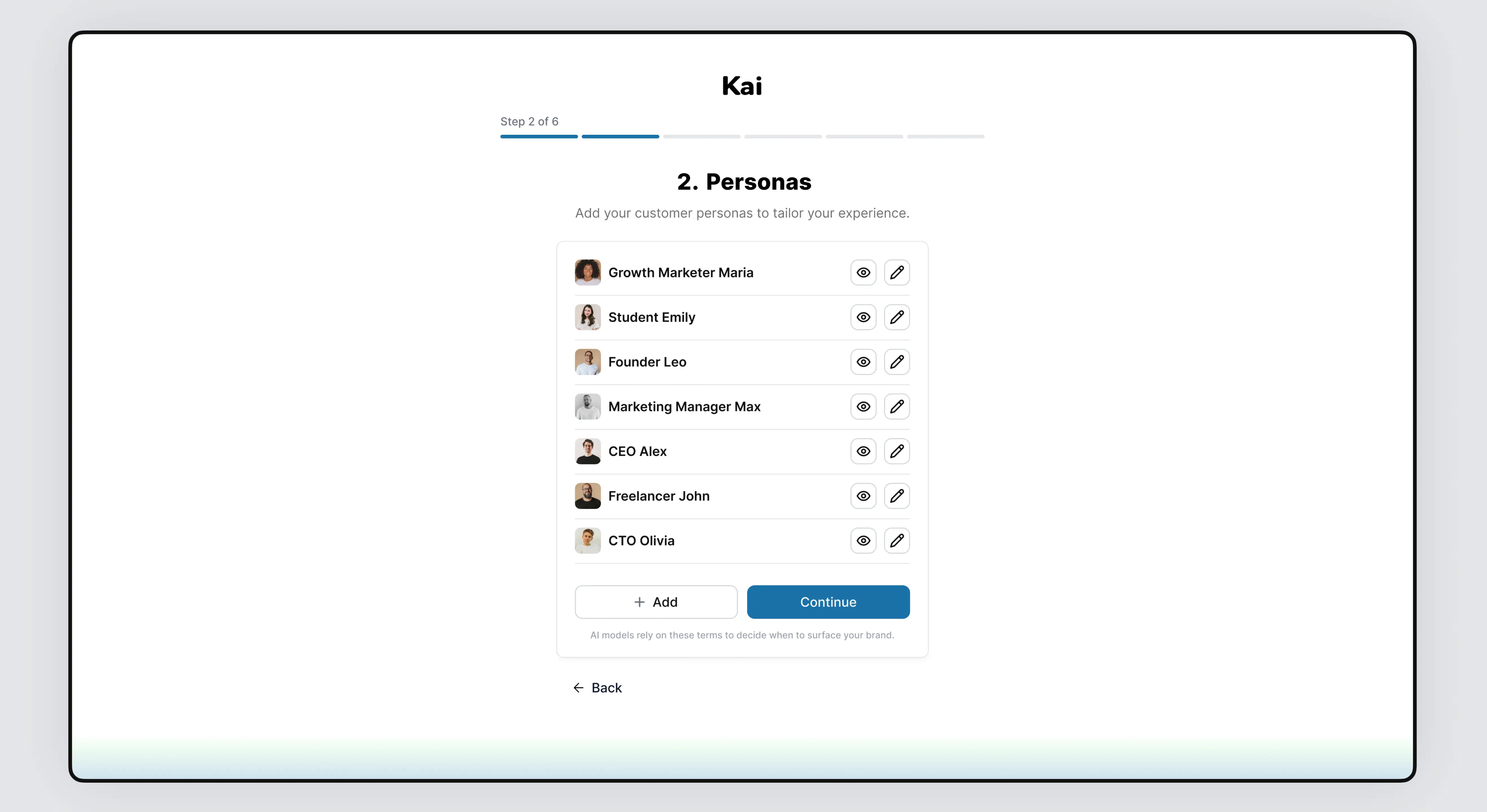 I led the end-to-end design and development of Kai, an AI SaaS platform that helps brands track their visibility across leading AI models like ChatGPT, Gemini, Claude, Copilot, and Grok. As the sole product designer, I conducted UX research, mapped user flows, built a reusable design system, and created high-fidelity designs. I also developed the entire front-end using Next.js (React), Tailwind CSS, and TypeScript, delivering a fully coded and dynamic UI with mock data, prepared for backend integration. I worked closely with the CTO and the founder to align on data structure and ensure straightforward integration.