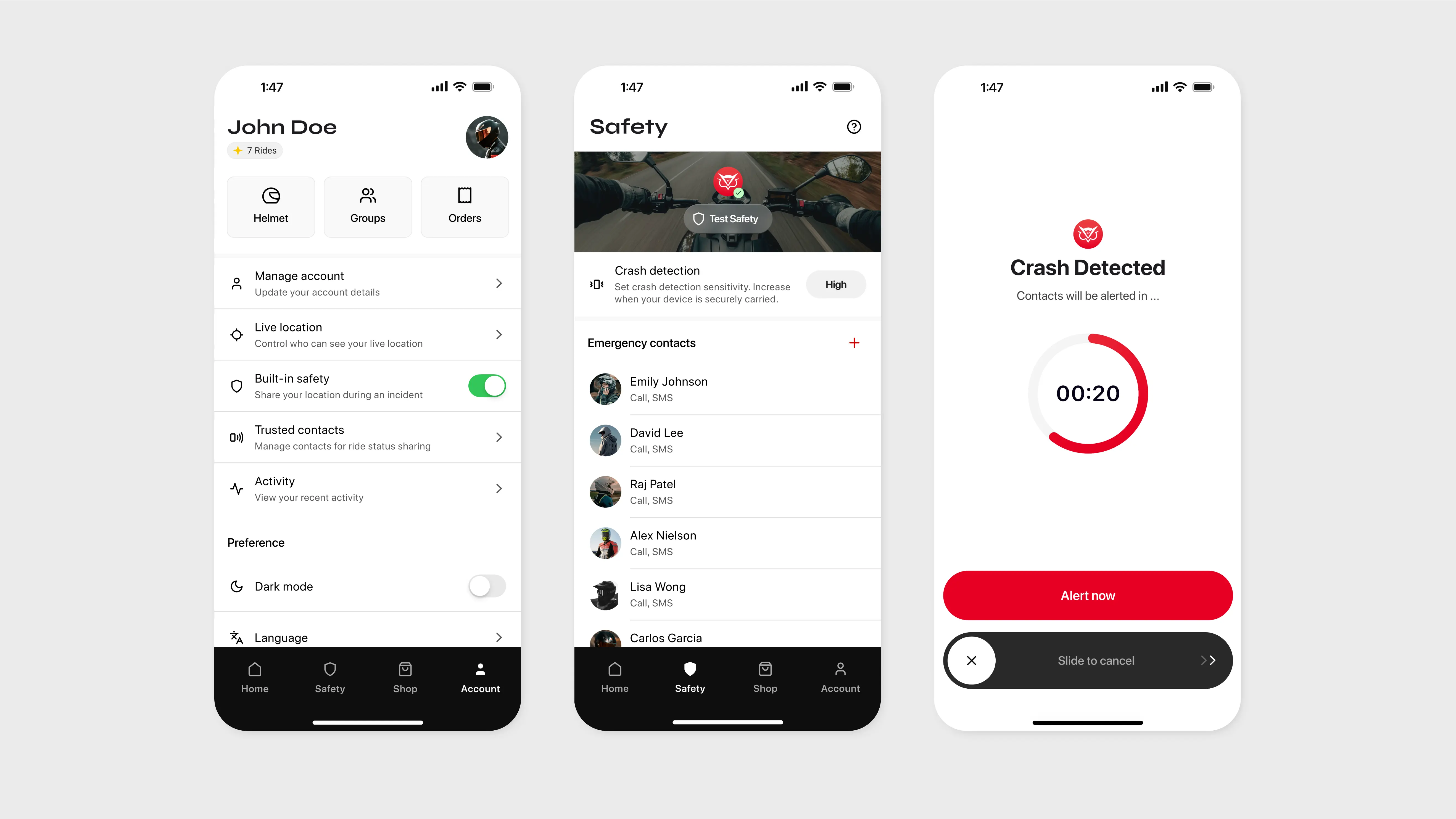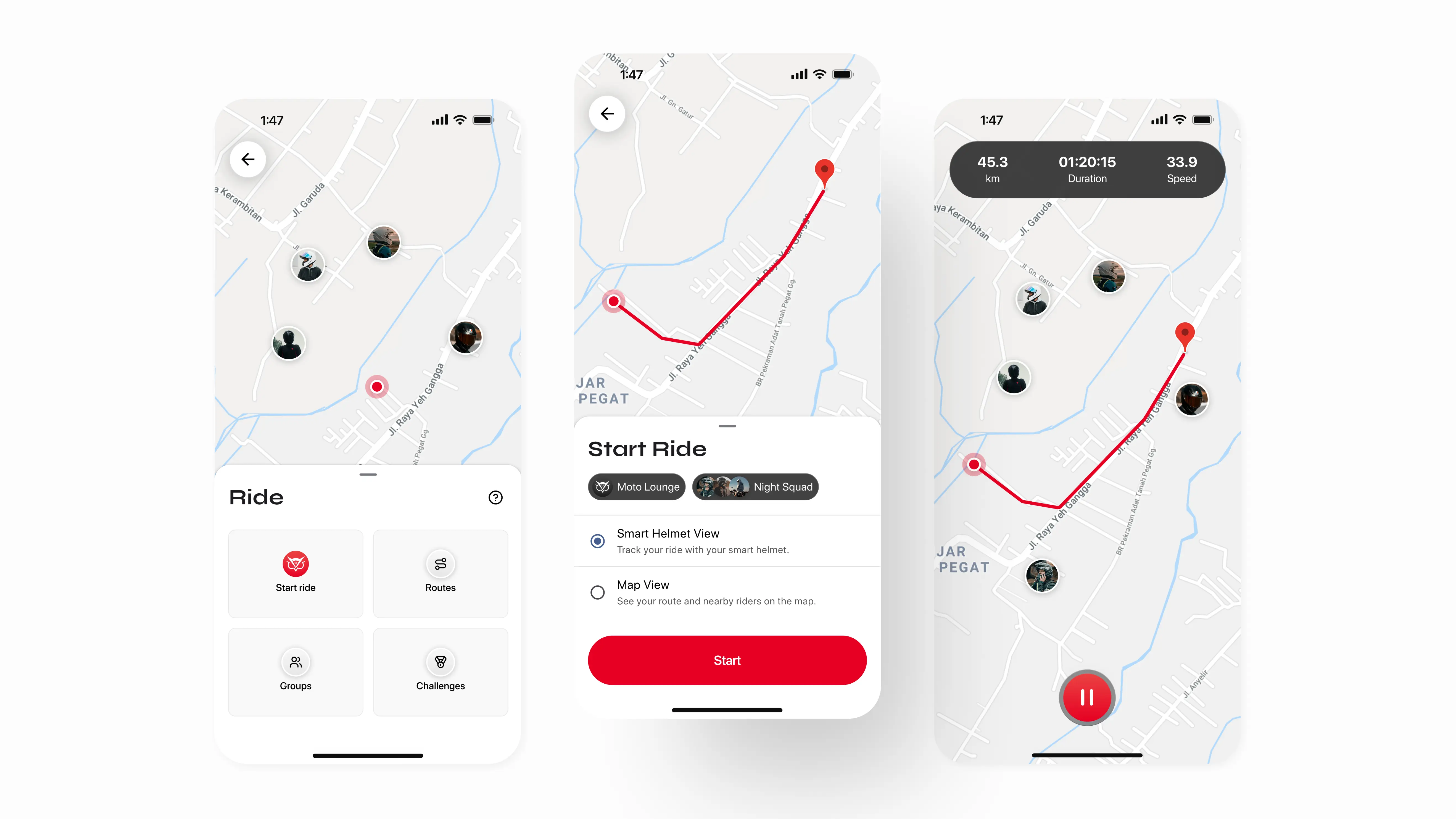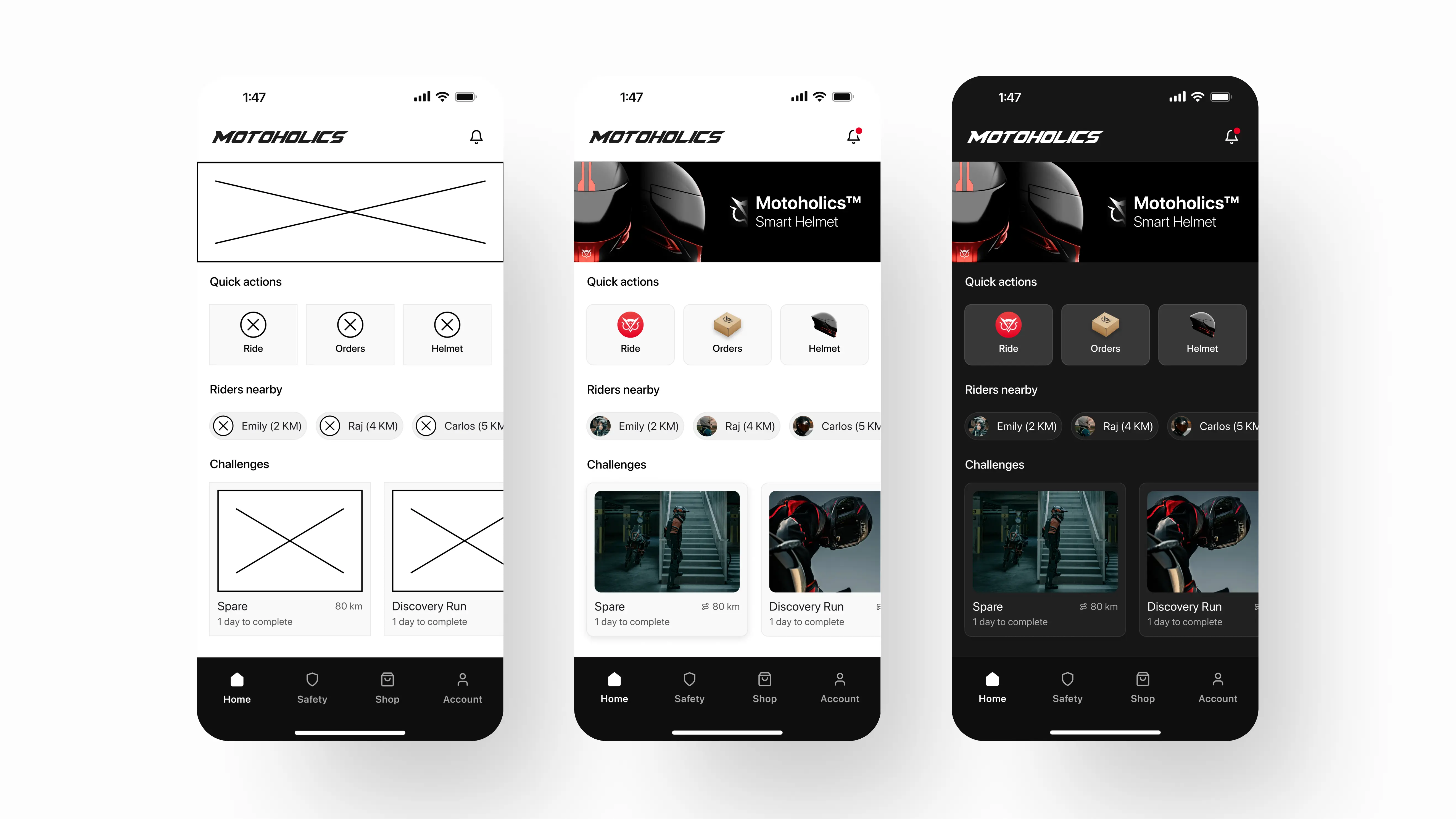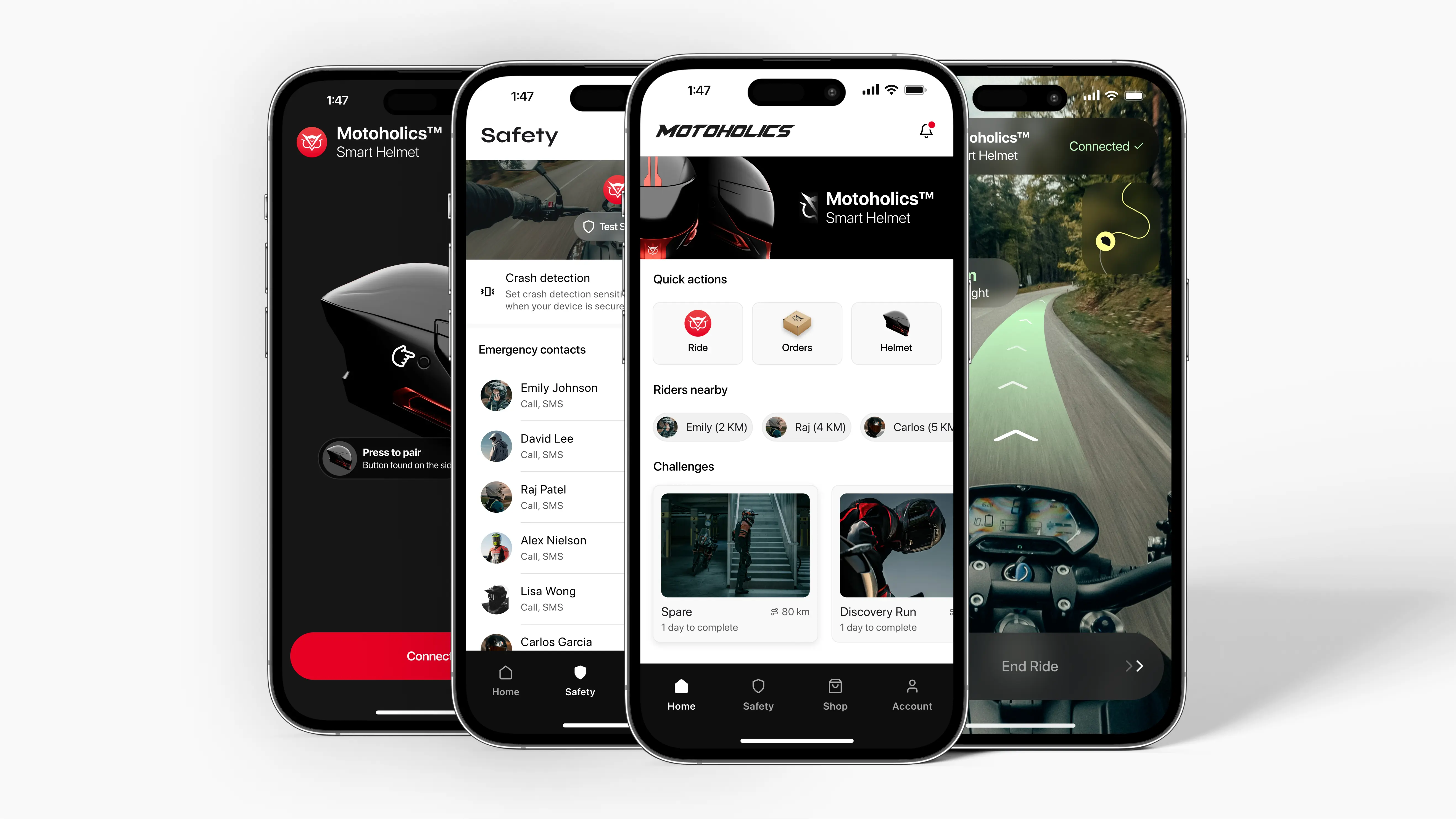 Additional features like social connectivity and smart helmet integration were planned for future iterations, allowing us to refine and expand the app based on user feedback. This approach ensured a lean yet effective release, supporting continuous improvement and adaptability to evolving user needs.