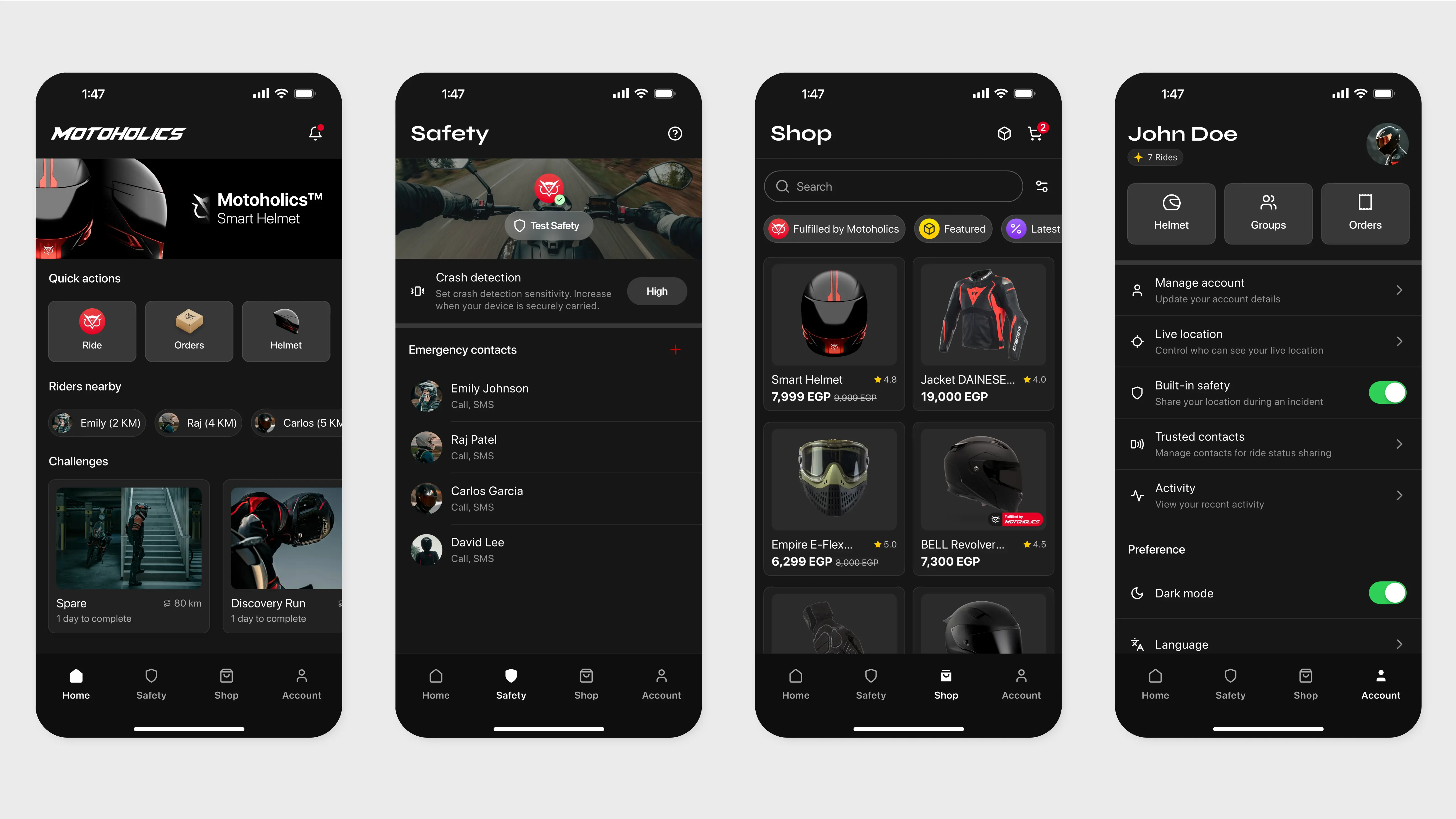 Motoholics is an all-in-one mobile app for motorcycle enthusiasts, combining route planning, real-time analytics, social connectivity, and an e-commerce platform for motorcycle gear. As the first mover in the market, Motoholics fills a significant gap by offering a holistic, user-centered app tailored specifically to riders’ needs. Paired with the Motoholics Smart Helmet, the app prioritizes safety and connectivity, creating an unparalleled riding experience. Within six months, Motoholics attracted 50,000 users and secured initial funding from the AUC Venture Lab Accelerator. The brand further raised its profile by sponsoring events like Innovation Hub, reaching both tech and motorcycling communities.